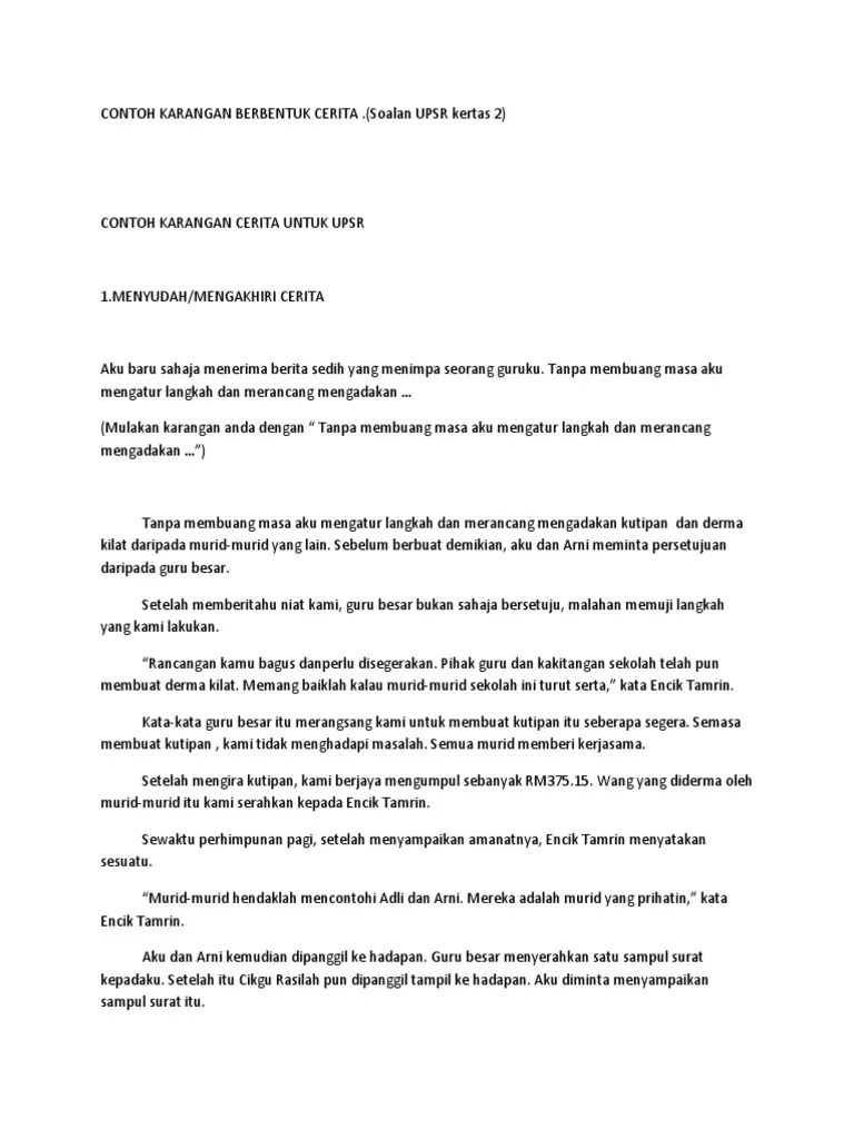 Upsr Karangan Jenis Cerita - Contoh Karangan Upsr Bahasa Melayu Senarai Tahun 6